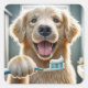 Golden Retriever mit Zahnbürste Quadratischer Aufkleber