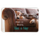 Machen Sie sich keine Sorgen um Ihre Probleme - nehmen Sie stattdessen ein Nickerchen! Dieser Magnet zeigt ein Foto eines Golden Retriever Hundes, der auf einer Couch unter einer weichen Leopardendruckdecke schläft.
