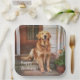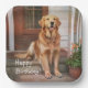 Auf diesen Geburtstagspapptellern befindet sich ein goldener Retriever auf der Vorderseite, der auf seinen Meister wartet.