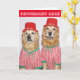 Auf dieser Urlaubskarte finden Sie goldene Retrievers, die mit kantigen, gestreiften Outfits und roten Top-Hüten versehen sind. Der Text lautet: "Peppermint Bark" und "Wünschen Sie Ihnen eine süße Saison!". Diese Karte eignet sich hervorragend für Weihnachten oder während der Winterferien.