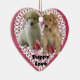 Zwei bezaubernde Hundewelpen aus Golden Retriever posieren hübsch auf einem spitzen, mit rosa Herzen bedeckten Herz. Es ist eine welpe Liebe! Wunderbare Geschenkidee für den Hundefreund in deinem Leben. Ideal für den Valentinstag oder jeden Tag des Jahres, denn es ist immer Zeit, etwas Liebe zu zeigen!