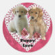 Zwei bezaubernde Hundewelpen aus Golden Retriever posieren hübsch auf einem spitzen, mit rosa Herzen bedeckten Herz. Es ist eine welpe Liebe! Wunderbare Geschenkidee für den Hundefreund in deinem Leben. Ideal für den Valentinstag oder jeden Tag des Jahres, denn es ist immer Zeit, etwas Liebe zu zeigen!
