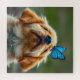 Ein zauberhafter, goldener Retriever Welpe mit einem Schmetterling auf der Nase.