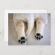 Blick hinunter auf das hintere Ende des winzigen Golden Retriever Welpen, mit niedlichem flauschigen Schwanz und schwarzen Pfoten.