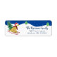 Niedliches Personalisiertes Golden Retriever Reiten Der Weihnachtsbaum Schlitten festliche schneeblaue Hintergrund. Einzigartiges Rücksendelabel für Retrivenliebhaber und Hundefreunde! © EMR Designs.