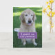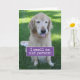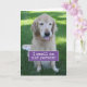 Das sonnige Foto eines Golden Retriever (Riley), der sich die Zunge herausklebt und windet, weil sie eine alte Person riecht. Zufällig ist es die Person, die diese Karte hält. Alles Gute zum Geburtstag, du alter Hund! Eine lustige Karte für alte Freunde oder Familie, die Hunde lieben.