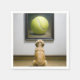 Ein goldener Retriever starrt auf ein Bild mit einem Bild, das ein Bild eines großen Tennisballs enthält