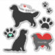 Hier ist eine Gruppe von niedlichen Hundeaufklebern! Die Designs enthalten schwarze Silhouetten goldener Retrievers, die sitzen und stehend sind, paw-Drucke, und die Phrasen "Liebe ist golden" und ich Liebe meinen goldenen Retriever."