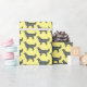 Golden Retriever Silhouette gelb, blau und schwarz Gitter Linien abstrakte Muster. Perfektes niedliches XMas Hundepapier für Lieblingspensionen für Golden Retriever Mamas und Vater. Der kleine Silhouette-Hund erlaubt das Papier nahtlos auf dem gelben Papier zu sein.