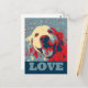 Auf dieser Postkarte befindet sich ein goldener Retrivenhund, der im "Hoffnungstablett" mit Rot-, Weiß- und Blautönen und dem Wort Liebe gehalten ist.