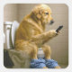 Golden Retriever Texting on a Toilet Quadratischer Aufkleber