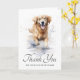 Beautiful, folded thank you card featuring a beautiful watercolor painting of a Golden retriever running through water and customizable text on the front and inside.