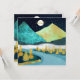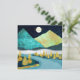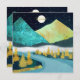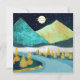 Eine wunderschöne Landschaft mit einzigartigen Texturen, die eine Fluss- und Berglandschaft mit aufsteigendem Mond und Sternenhimmel in den Farben Blau, Gold, dunkelgrün und Gelb zeigen.