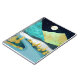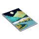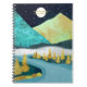 Eine wunderschöne Landschaft mit einzigartigen Texturen, die eine Fluss- und Berglandschaft mit aufsteigendem Mond und Sternenhimmel in den Farben Blau, Gold, dunkelgrün und Gelb zeigen.