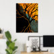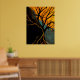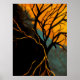 This evocative abstract artwork explores the deep connection between growth, grounding, and transformation through the powerful symbolism of a tree at twilight. Stark black branches stretch upward against a glowing sky of warm amber and soft teal, while luminous golden roots flow downward into darkness, creating a striking visual balance between light and shadow. The composition feels both dramatic and meditative, inviting reflection on where we come from and what sustains us.