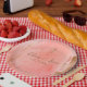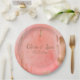 Hübsches Gold, rosa, pfirsichfarbene Teller mit Namen und Datum. Ideal für Brautparty.
