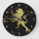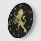 Golden Royal Lion on Black Marble w Gold Zahlen Große Wanduhr