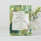 Weiße und blau-grüne königliche Pfauen Federn auf einem Hintergrund tropischer Pflanze mit exotischen Federn für ein Hochzeitskollektionsmuster, um sich zu personalisieren