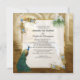 Weiße und blau-grüne königliche Pfau Hochzeitsfantasie-Szenerie in einem tropischen Tempel umgeben von Grün mit modernen goldenen Federn Schmuck Dekoration. .