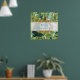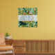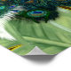 Zwei königliche Pfauen & Federn auf einem tropischen grünen Hintergrund mit exotischen Federn gestreut für eine Hochzeit oder Dekoration Design sagen, danke für Ihren Gast suchen.