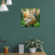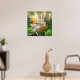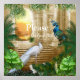 Weiße und blaugrüne königliche Pfauenhochzeitszenerie in einem tropischen Tempel umgeben von Grün für eine Hochzeit oder Dekoration