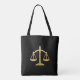 Eine Tasche mit einem Bild der goldenen Waage auf einem schwarzen Hintergrund. Einfach und elegant.
