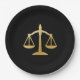 Papier Teller mit einem Bild von goldenen Schuppen auf einem schwarzen Hintergrund. Einfach und elegant.