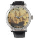 Uhr, Klassische Damenuhr mit schwarzen Lederarmband