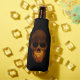 Grosser goldgelber Schädel mit geteiltem Kopf vorne und hinten mit schwarzem Hintergrund. Halloween Themenflasche cooler.