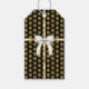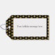 Ein elegantes Geschenkschild mit schwarzem Hintergrund und goldfarbenem Schneeflockenmuster. Die Vorderseite hat ein goldfarbenes Band. Auf der Rückseite befindet sich ein Bereich für Ihre Urlaubsbotschaft.