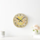 Round sphinx symbol in golden colors, numeral clock face, antiqued background