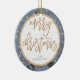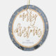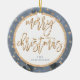 Weihnachtsschmuck mit goldenem Effekt (Imitate, als Bild gedruckt) Sterne, Frohe Weihnachten und anpassbarer blauer Text, wo Sie Ihren Familiennamen hinzufügen können. Es ist ein zweiseitiges Keramik-Ornament und misst 2,87 Zoll x 4,87 Zoll und wiegt 1,4 Unzen.