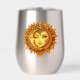 This striking sun-and-moon boho goddess artwork features a radiant golden winking face surrounded by fiery mandala rays. Symbolizing balance, intuition, and feminine strength, this piece represents harmony between day and night, mind and spirit. This beautiful stainless steel wine tumbler is perfect for anyone drawn to celestial symbolism and unique spiritual art.