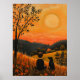 Erleben Sie die Schönheit der einfachen Momente mit dieser aufwärmenden Naïf-Illustration. Ein kleiner Junge und sein treuer Hund sitzen zusammen und beobachten das goldene Set über sanfte Hügel. Die warmen Pinselstriche und die Herbstfarben schaffen eine nostalgische und friedliche Atmosphäre, die dieses Kunstwerk perfekt für Liebhaber der Volkskunst, der Landschaft und der herzlichen Freundschaft macht.