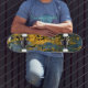 Golden Teal Grunge Streak Skateboard