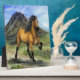 Dies ist ein Pen & Tinte mit Aquarellpinsel-Bleistift-Waschbecken eines meiner isländischen Stuten mit einer Farbänderung. Hintergrund ist das, was Sie in Island sehen könnten