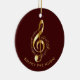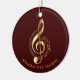Moderner, goldfarbener Treppenschnitt mit Noten über rustikal rotem Hintergrund