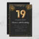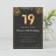 Luxuriöse Golden Tropical Palm Blätter 19. Geburtstag Party Einladung. Adorable 19. Geburtstagsfeier in einem Schwarz-Gold-Ballon-Design mit goldenen tropischen Palmen Blätter. Passen Sie Ihre Party-Details an und schicken Sie eine E-Mail an Familie und Freunde, die Sie zum 19. Geburtstag mit Stil einladen!