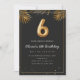 Luxus Golden Tropical Palm Blätter 6. Geburtstag Party Einladung. Adorable 6. Geburtstagsfeier Einladung in einem Schwarz-Gold-Ballons-Design mit goldenen tropischen Palmen Blätter. Passen Sie Ihre Party-Details an und schicken Sie eine E-Mail an Familie und Freunde, die Sie zum 6. Geburtstag mit Stil einladen!