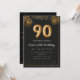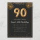 Adorable 90th birthday party invitation in a black and gold balloons design with golden tropical palm leaves. Customize with your party details and mail out to family and friends inviting them to celebrate the 90th birthday with style!