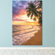 Bring a sense of calm and escape into your space with this tropical sunset beach canvas print, featuring golden light, gentle ocean waves, and elegant palm trees lining a peaceful shoreline.