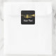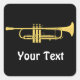 Aufkleber, die ein Musikthema enthalten - eine illustrierte goldene Trompete, die Details des Instrumentes vor einem Hintergrund zeigt, dessen Farbe geändert werden kann, und Text, der anpassbar ist.