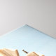 Ein wunderschönes, ruhiges Ozean-Panoramabild mit Sonnenschirmen in der Dämmerung des Abends an der Küste. Sonnenschirme aus weißem Strandresort, in sanfter goldfarbener Sonne mit blass blauem Himmel gegossen, und ruhiges Meerwasser verleihen der Stille dieses Kunstdrucks an der Küste eine besondere Note. Das ist die Originalfotografie des Ocean Beach von JLW_FOTOGRAPHY.