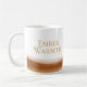 Radiant warmth theme in crisp white with a warm brown horizontal sweep and refined gold serif lettering reading Ember Warmth. This modern neutral accent suits morning coffee rituals, desk styling, or kitchen shelf displays, pairing effortlessly with taupe, wood, and cream interiors for a grounded everyday setting.