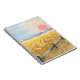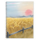 Dieses ruhige Design fängt ein goldenes Weizenfeld ein, das bei Sonnenuntergang sanft in der Brise schwingt. Ein hellblauer Himmel mit rosa Gassen trägt zur Ruhe bei, während ein kleiner Holzzaun und ein weiter entfernter Berg die Szene vervollständigen. Ideal für Reflexion oder Produktivitätsjournalisierung.