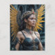 dark angel queen with golden wings and a golden crown, wearing a black and gold dress, exuding a regal and mystical aura.