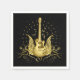 Fantasy-Stil goldene Gitarre mit Flügeln, Scrollen Details und musikalischen Noten.