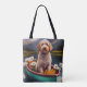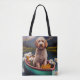 Goldendoodle auf dem Paddle: Ein Landschaftliches
