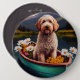 Goldendoodle auf dem Paddle: Ein Landschaftliches Button