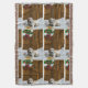 Adorable goldendoodle schützt die Kekse, die vor der Tür für den Weihnachtsmann links werden.